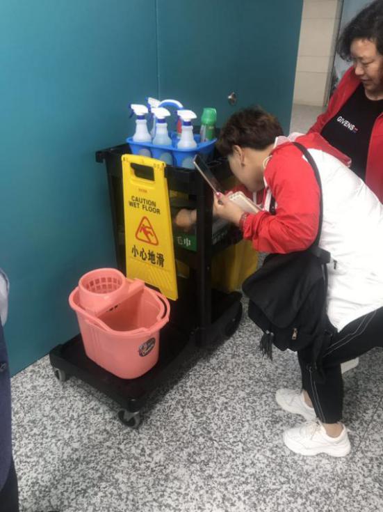 保潔車干凈、整潔、配備齊全。從物品的分類,合理的擺放等細節(jié)方面充分體現(xiàn)了公司的管理方式,保潔員的整體素質(zhì)。
