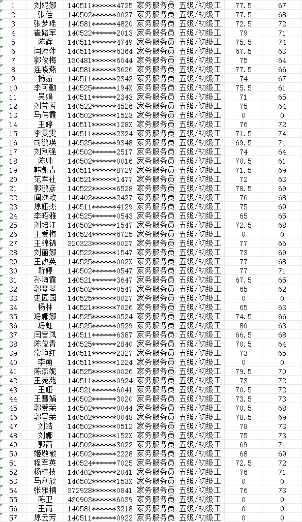 2024年9月21日第39批家政服務(wù)員初級(jí)認(rèn)定人員成績(jī)公示